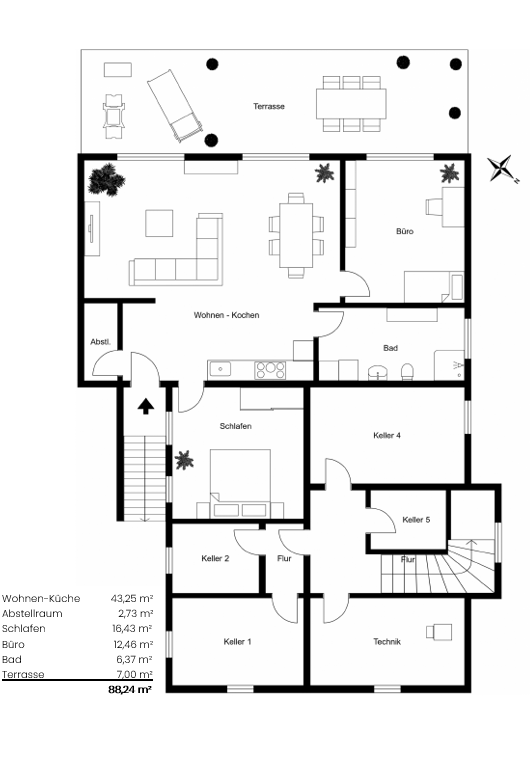 Die umfassende Modernisierung orientiert sich am KfW-70-Standard und vereint damit nachhaltiges Bauen mit zeitgemäßem Wohnen. Die angebotene Wohnung befindet sich im Untergeschoss und wird in hochwertiger Massivbauweise bezugsfertig errichtet.
